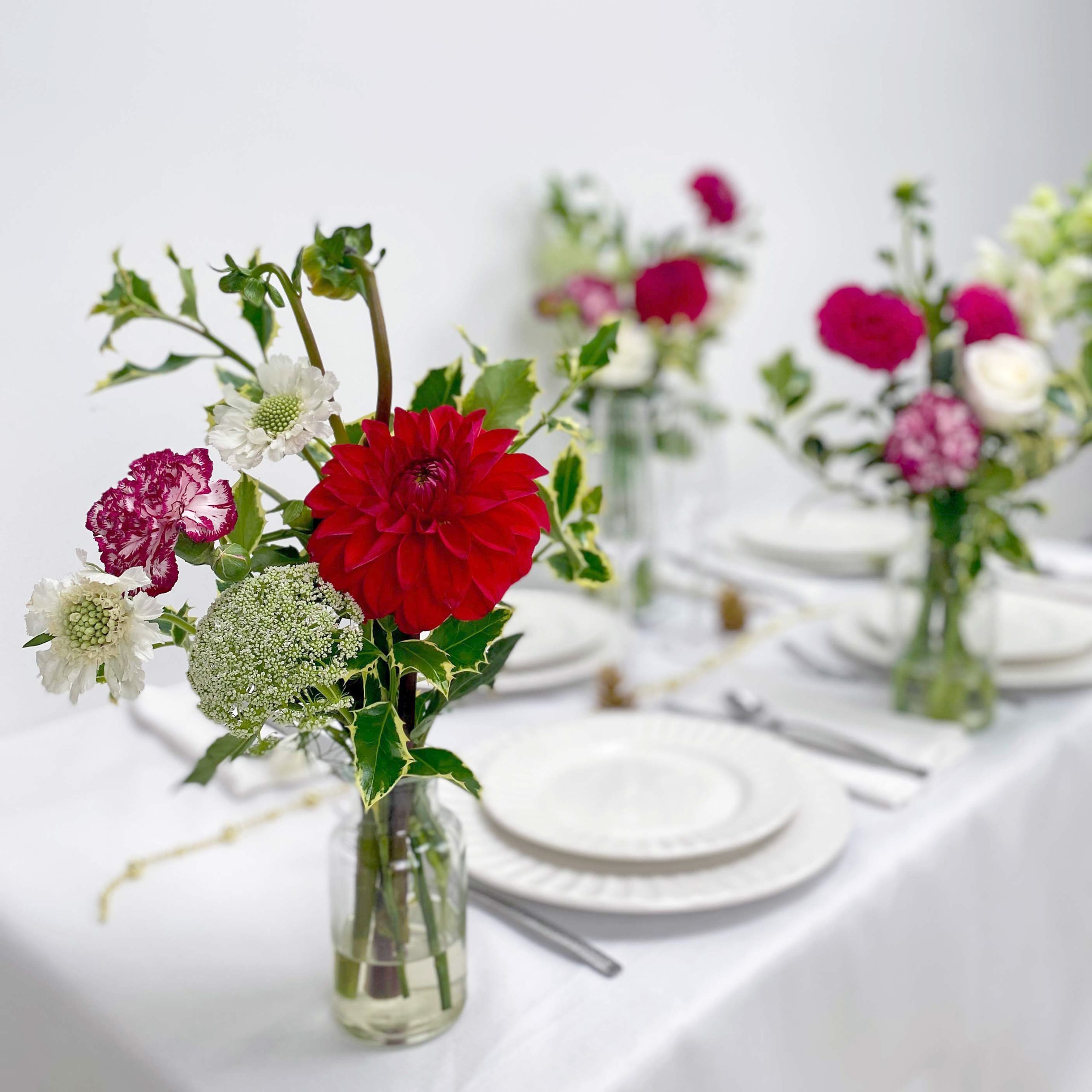 Cluster all three in the centre of the table for a simple focal point, or line them down the middle to create a relaxed, festive feel that feels considered without trying too hard. You can also scatter them around the room – on a sideboard, next to the drinks, by the entry – for little pockets of Christmas warmth. They’re small enough not to overwhelm, pretty enough to make a real difference, and the vases can be used long after the season is over.