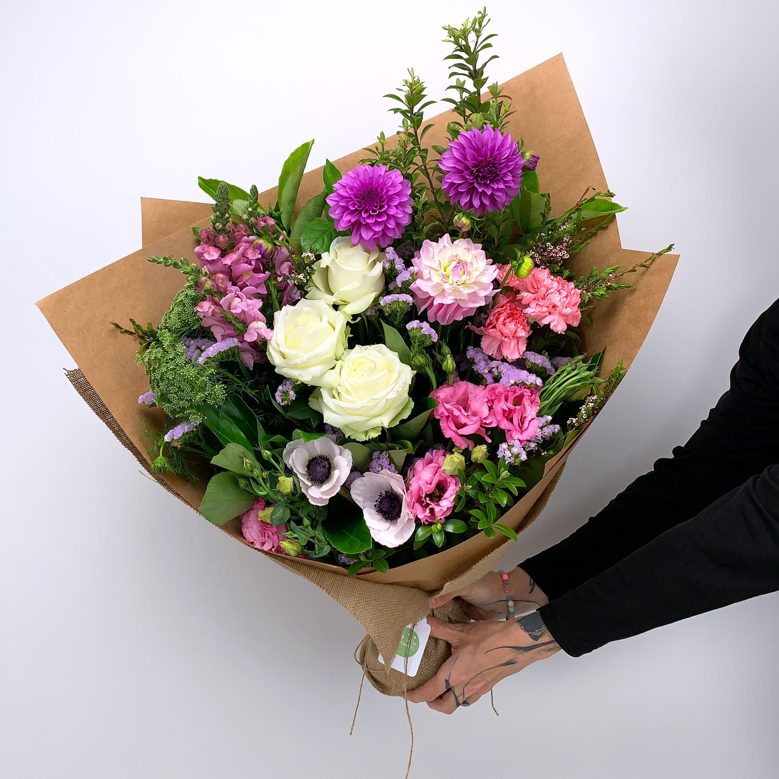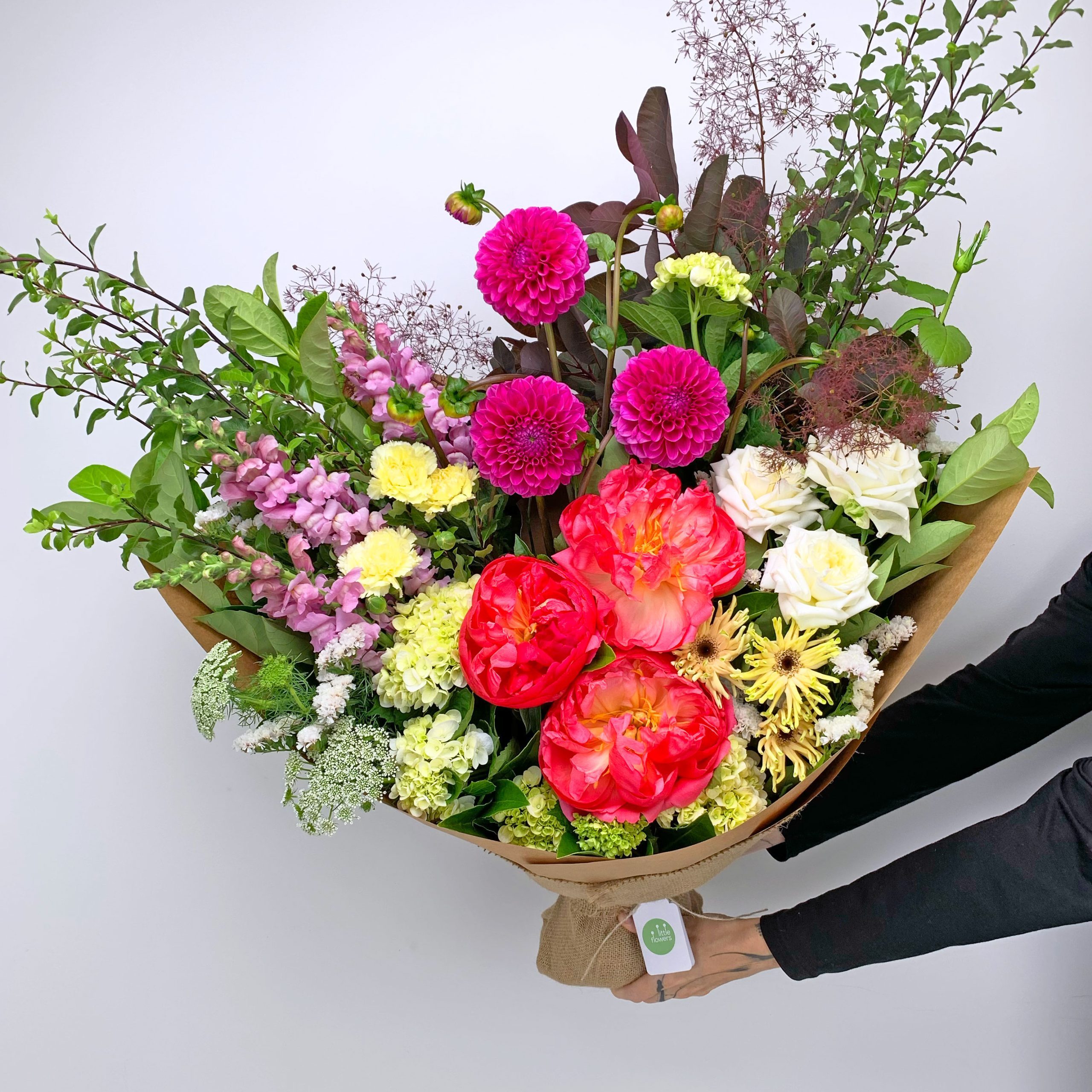 We design just one perfect, mixed bouquet each day. Because keeping it simple means less waste for the planet, and less decision fatigue for our lovely customers. It also means we can focus on choosing the freshest and prettiest flowers the market has to offer. So all you need to do is choose which size to send.