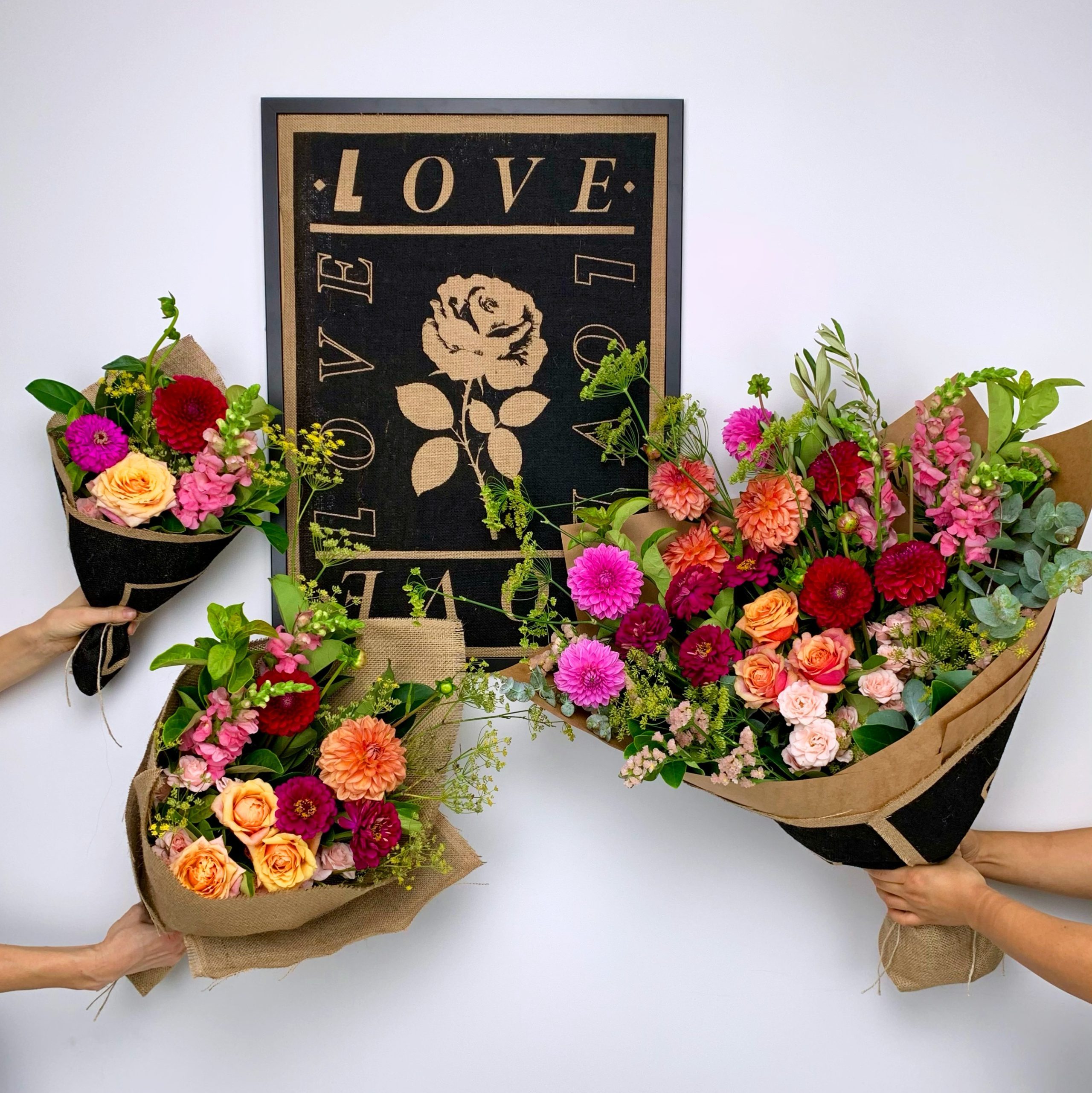 Every bouquet in this limited-edition Valentine’s Day range comes wrapped in hessian that, when unwrapped, reveals a wonderful surprise: a limited edition artwork.
