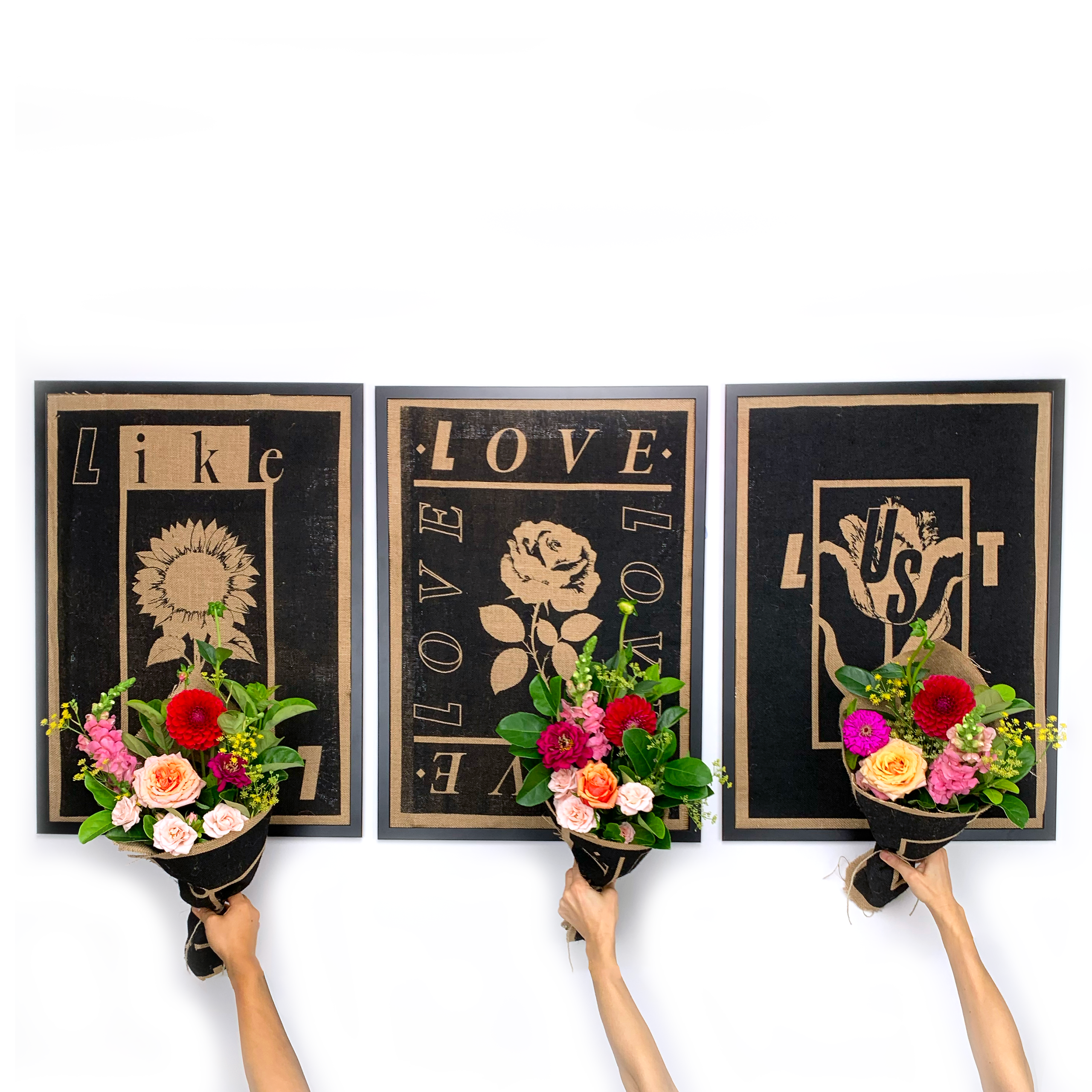 The artworks celebrate three sentiments associated with Valentine’s Day – like, love and lust.