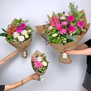 Our donated Daily Mixed Bouquets are made using the same fresh, seasonal flowers as our regular daily bunches. We prioritise locally grown Australian flowers wherever possible, so your donation also supports local growers – while helping us deliver something truly uplifting to Meals on Wheels clients across Sydney.
